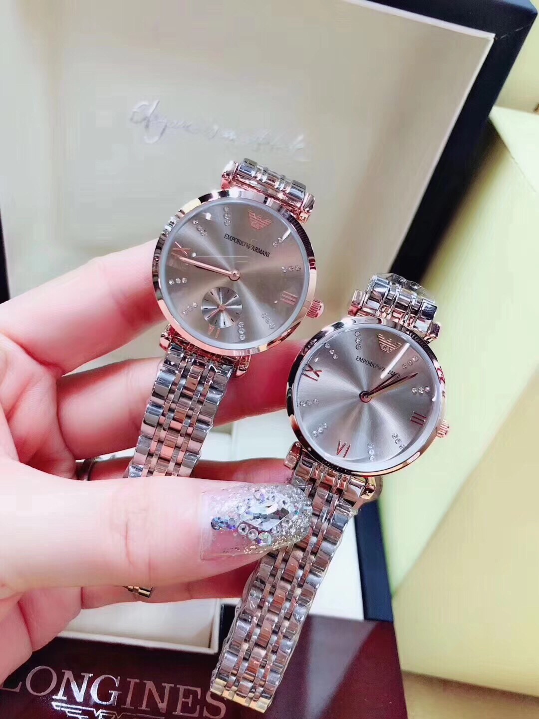 Armani, the fashion capital of Italy, leads the trend in Milan. The overall design is small and slender, with a rounded outline that perfectly enhances the wearer's charm; The gentle and subtle pearl fritillaria, combined with the three-dimensional pointer, shines against each other, and is crafted with meticulous polishing, presenting an extraordinary taste of flowing light and brilliance. The strap adopts a butterfly shaped buckle, which fits the wrist better and enjoys excellent quality. Size 32mm * 9mm. Large size 40mm * 9mm