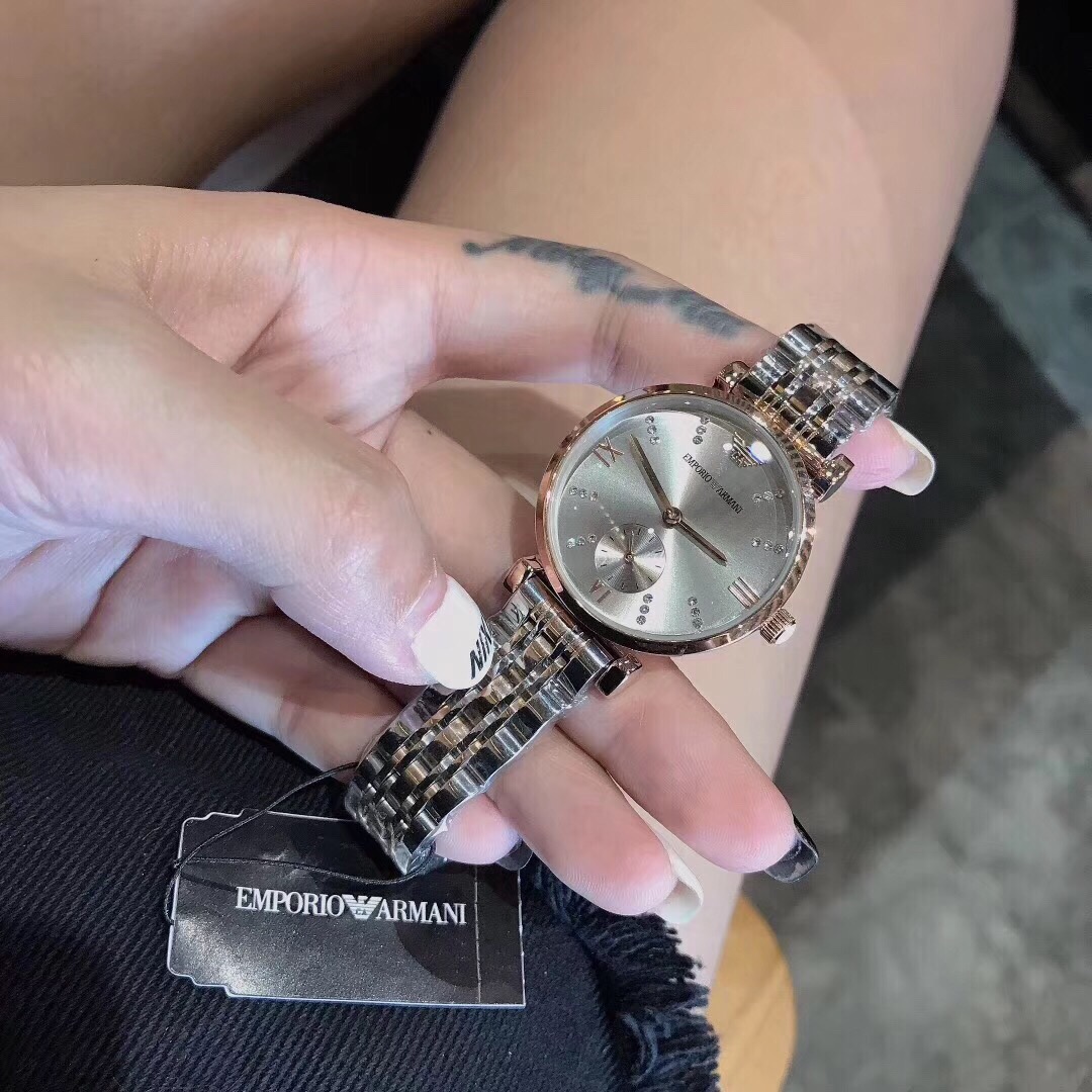 DetailArmani, the fashion capital of Italy, leads the trend in Milan. The overall design is small and slender, with a rounded outline that perfectly enhances the wearer's charm; The gentle and subtle pearl fritillaria, combined with the three-dimensional pointer, shines against each other, and is crafted with meticulous polishing, presenting an extraordinary taste of flowing light and brilliance. The strap adopts a butterfly shaped buckle, which fits the wrist better and enjoys excellent quality. Size 32mm * 9mm+40mm * 9mm