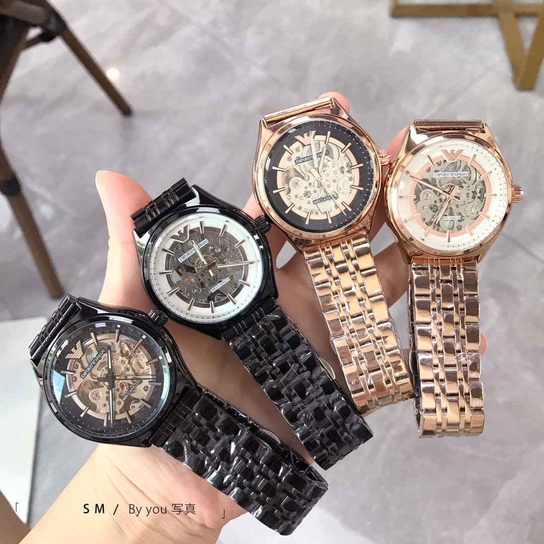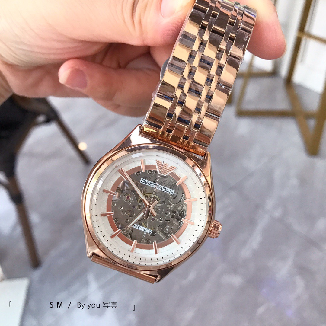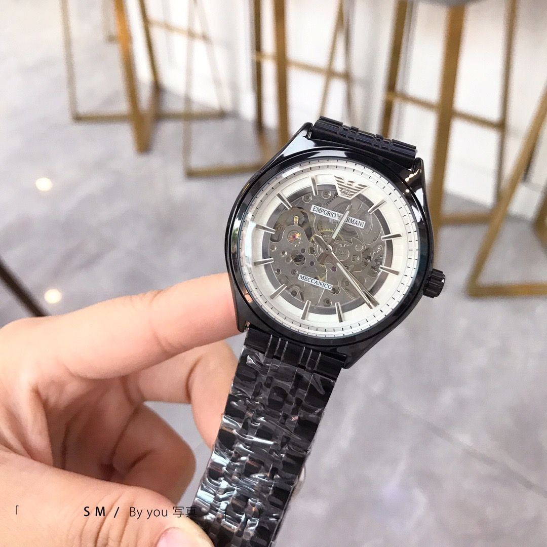 Armani's new model is booming 🔥🔥🔥 Men's fashionable mechanical wristwatch, featuring a hollowed out design and reinforced mineral glass mirror surface. Strap: high-strength solid steel strap with genuine leather strap, size: 40mm 🌹🌹🌹 The dynamic and dry white hollowed out dial, with a metallic texture that integrates humanities and art, is not only a symbol of status but also a fashion choice today 💘💘🔷 S m ✔