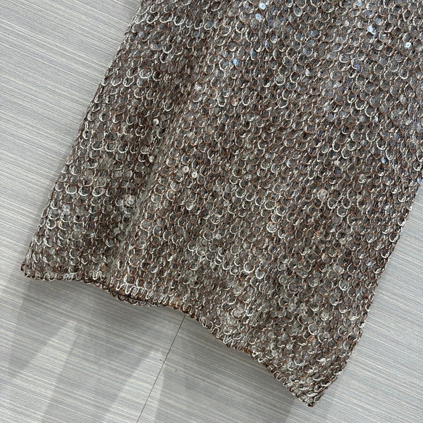 New Brunello_cucinelli 23 Spring and Summer Mermaid 🧜♀️ Shining Fish Scale Sequin Knitted Long Tank Top