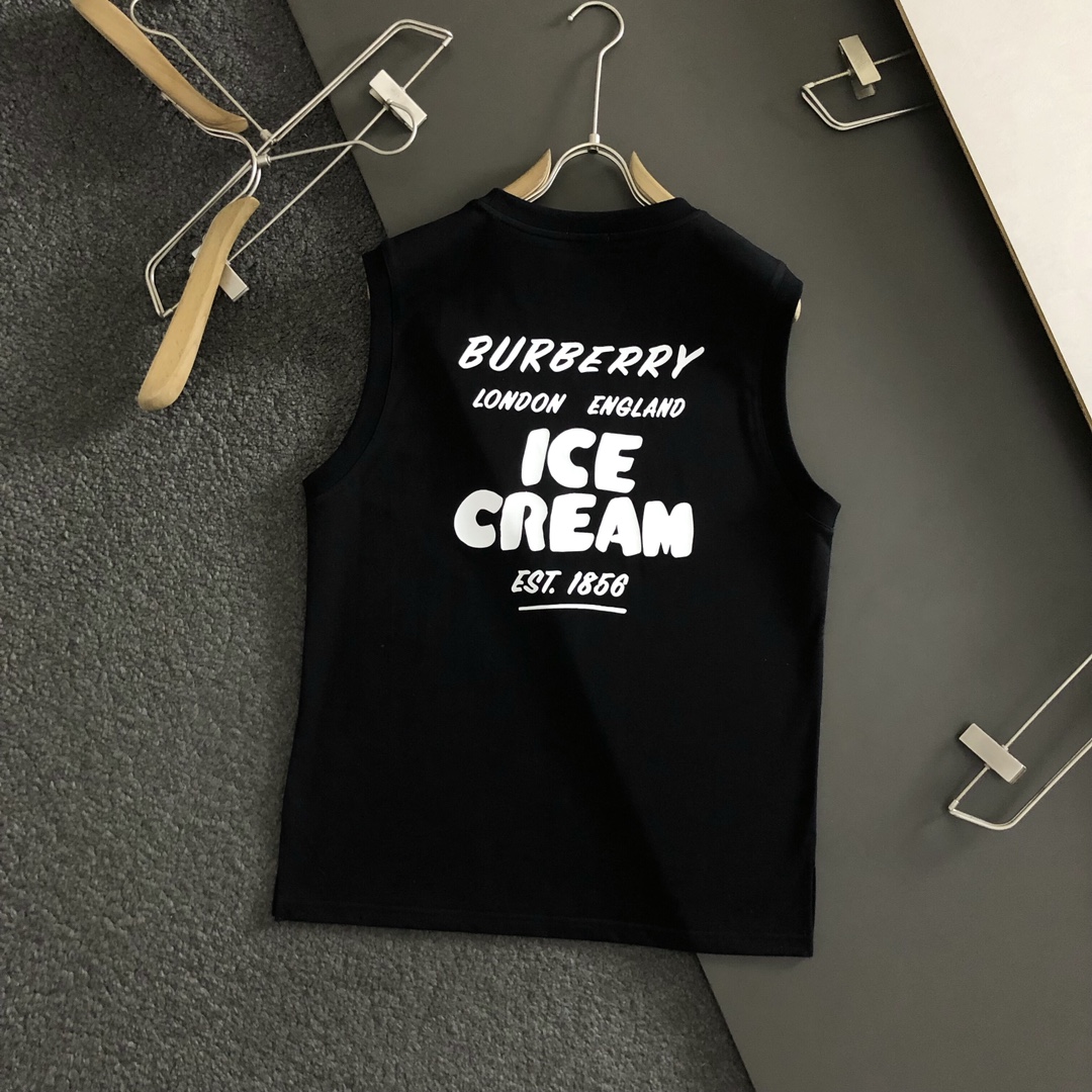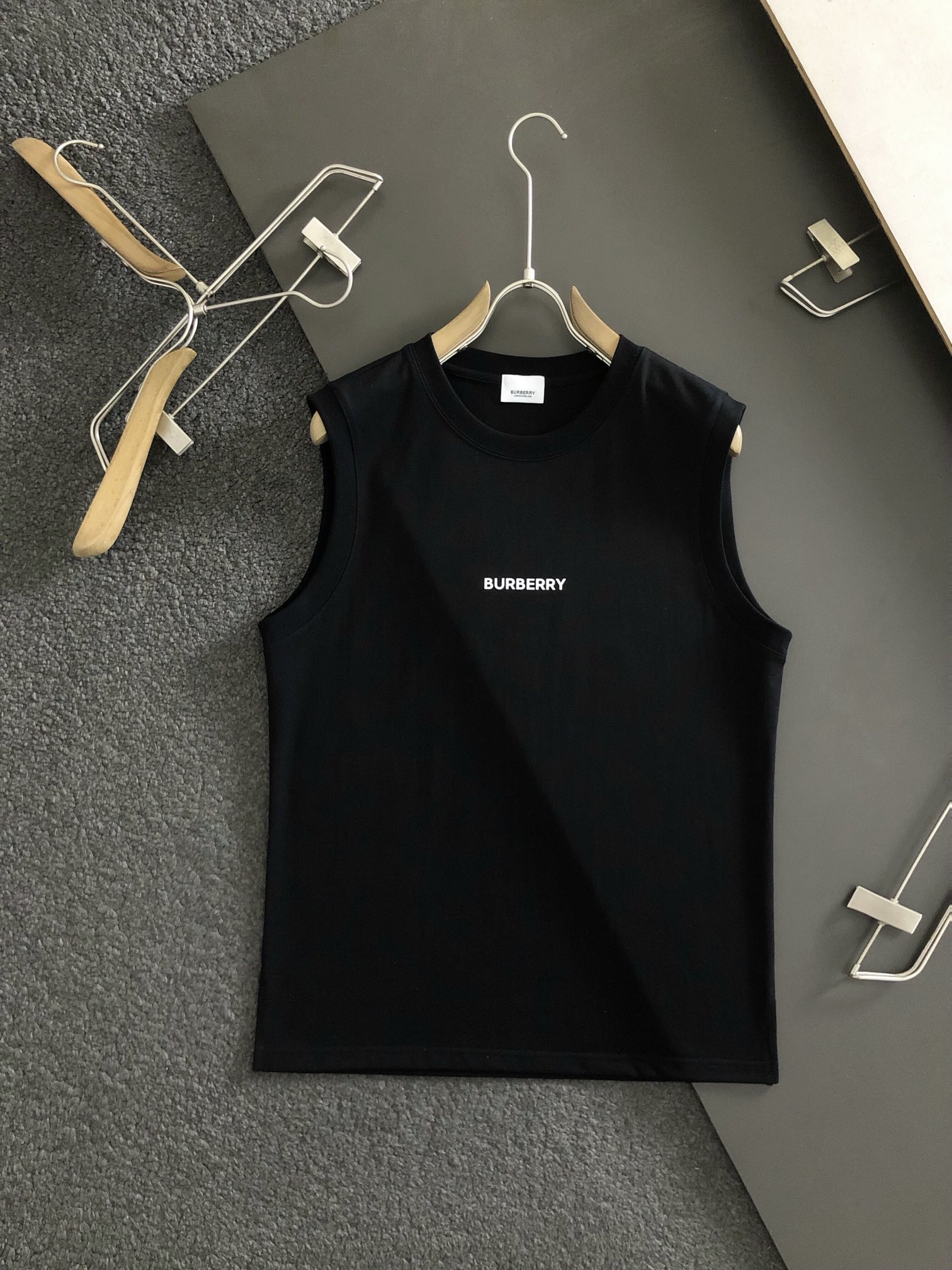 New Burberry Top Black Three dimensional Letter Offset Printing Process Counter Fabric Sleeveless Round Neck Vest