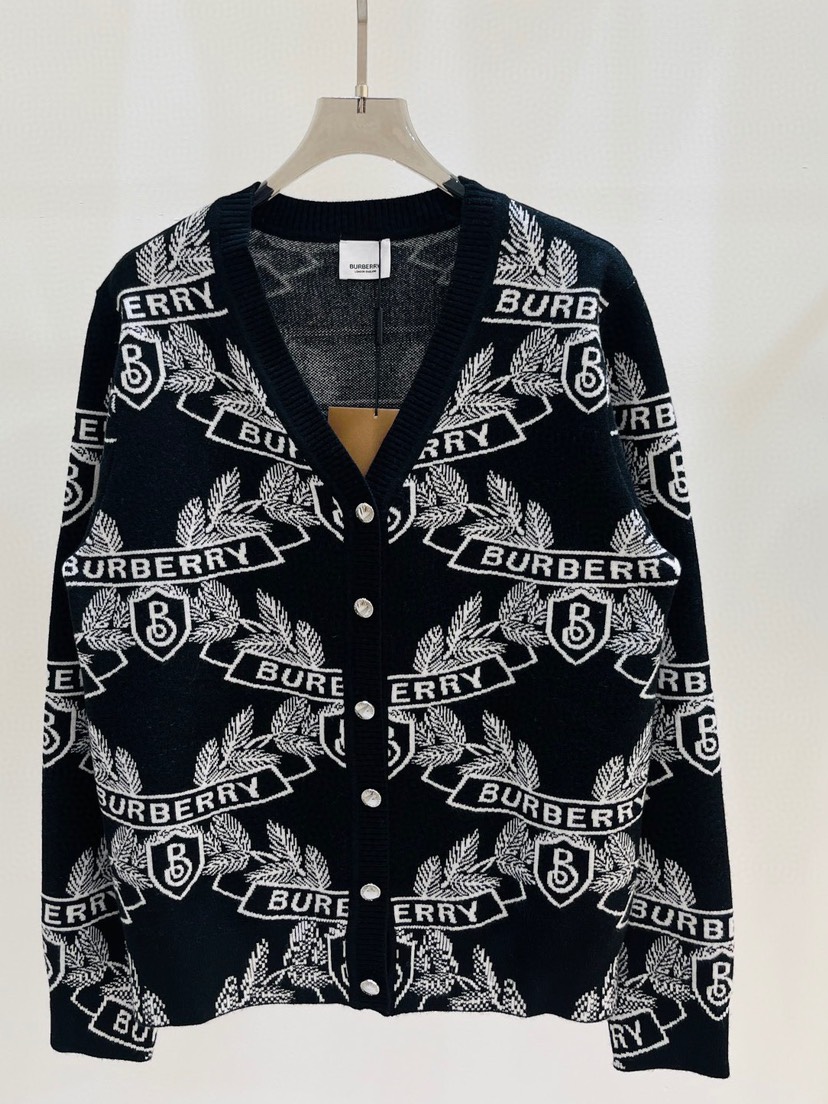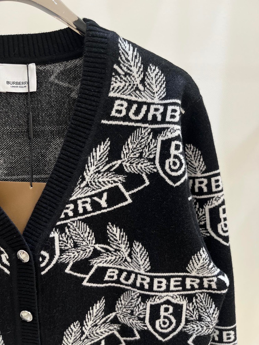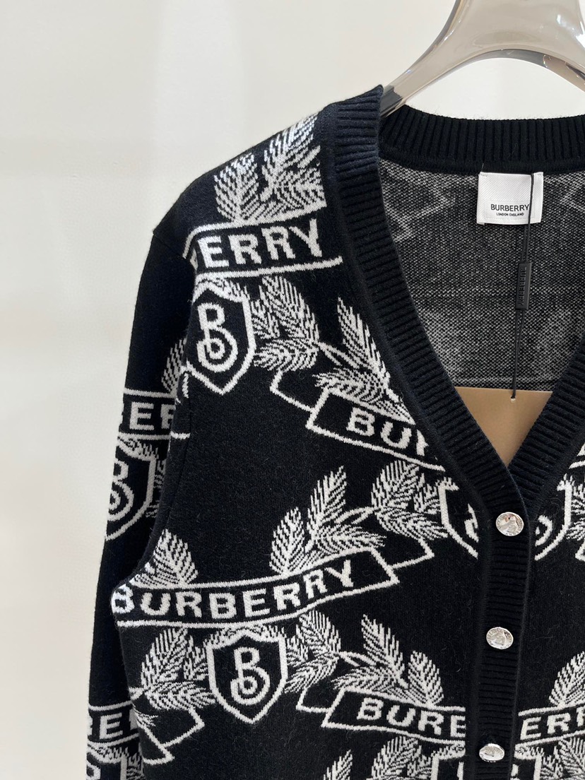 New ❤️ Burberry BBR Autumn/Winter New Collection V-neck Knitted Jacquard Single breasted Cardigan
