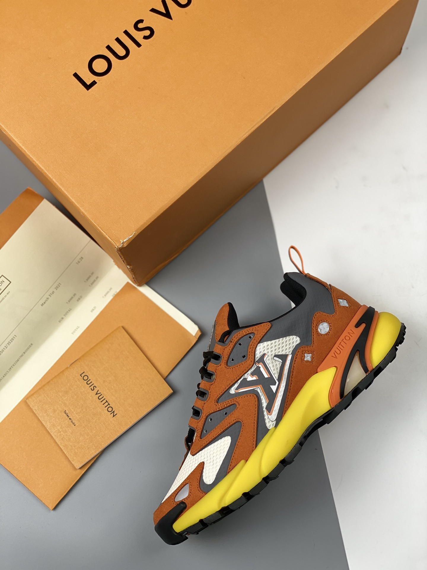 The lv runner static 2023ss series of sneakers Daddy shoes follow the popularity of the lv trainer Skate shoe at the same time, Mr. Virgil's another painstaking work Static has a mysterious and unpredictable feeling. Inspired by retro running shoes, it is also added to the future elements of Titan. The appearance of daddy shoes plus the design of damier grid monogram printed double-layer tongue, combined with the fabric patent leather and other multiple materials, this time spliced technology mesh fabric and cow leather, Presenting eye-catching colors, gradient lv letters, and reflective monogram flowers, highlighting one side of the vuitton logo. Residing outsole size: 35 36 37 38 39 40 41 42 43 44 45