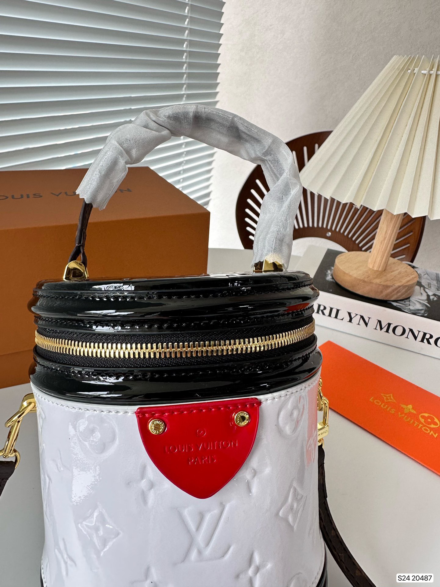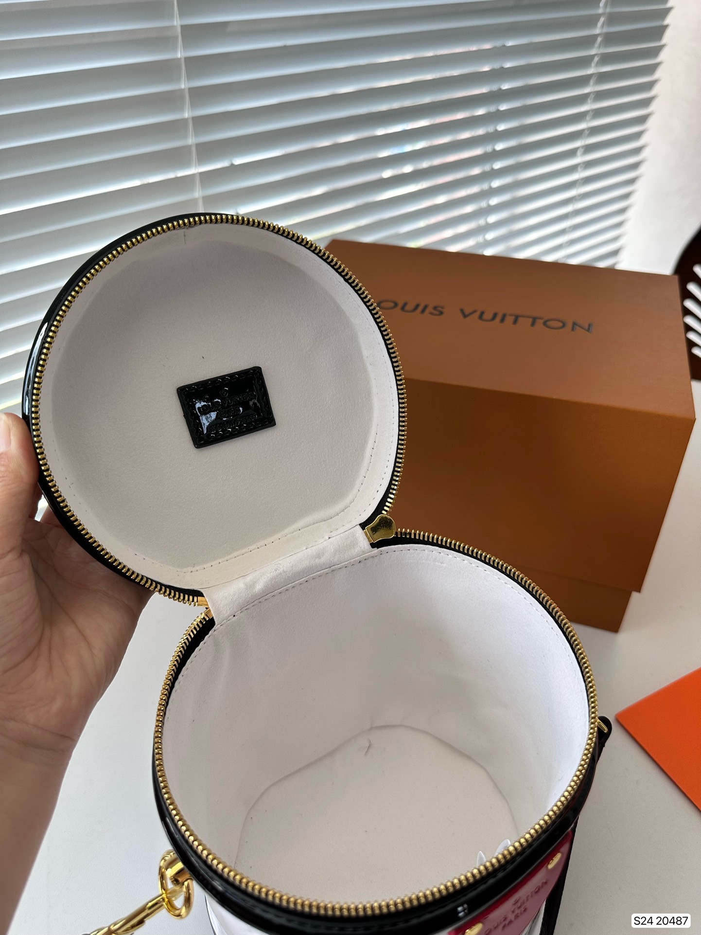 P270 folding box LV patent leather wealth container, with a unique barrel shaped design that hits the heart of a girl, the most important star, not too easy to wear clothes, can be perfectly matched! Size: 15 17 Art. No. 20487