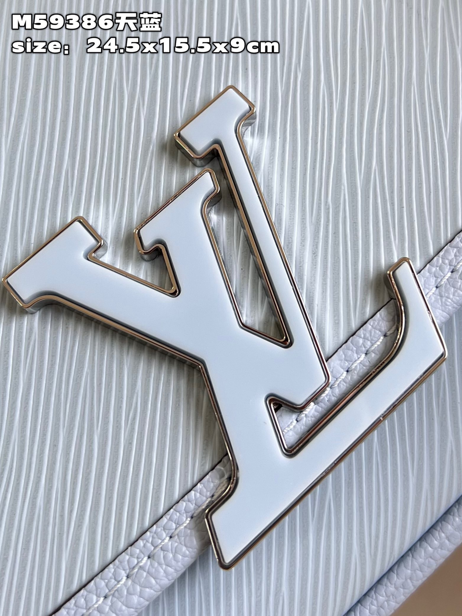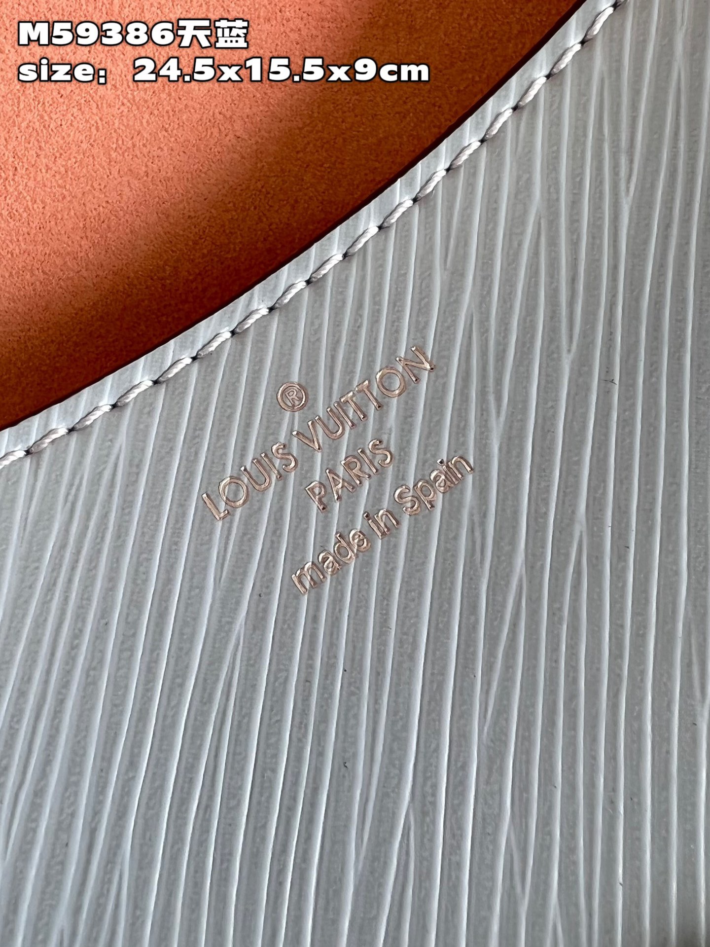 P780 【 Exclusive live shot of m59386 Sky Blue 】 The m59461 is a Buci crossbody bag made from iconic grain EPI leather. This season, it is released in exquisite light color, adding a soft and elegant feel to the spring silhouette. The compact appearance and oversized LV resin buckle in the same color give it a fashionable and modern charm. Size: 24.5x15.5x9cm