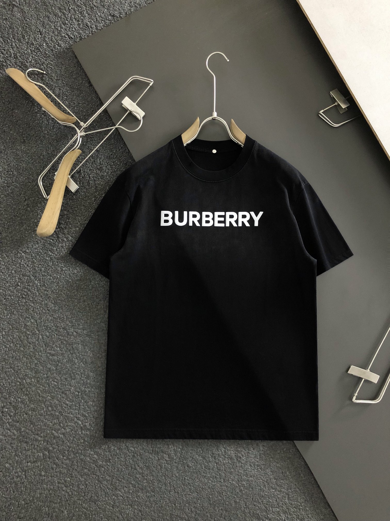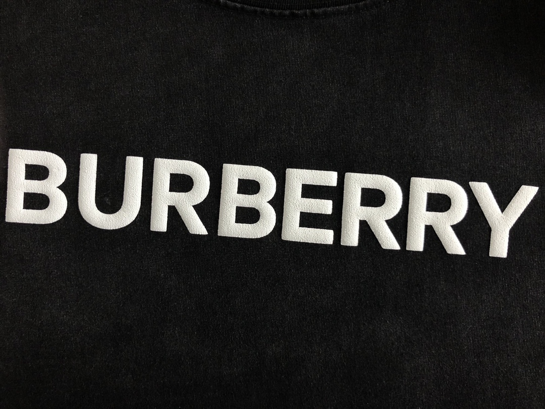 New Burberry Top grade black retro washed and printed trendy brand counter short sleeved
