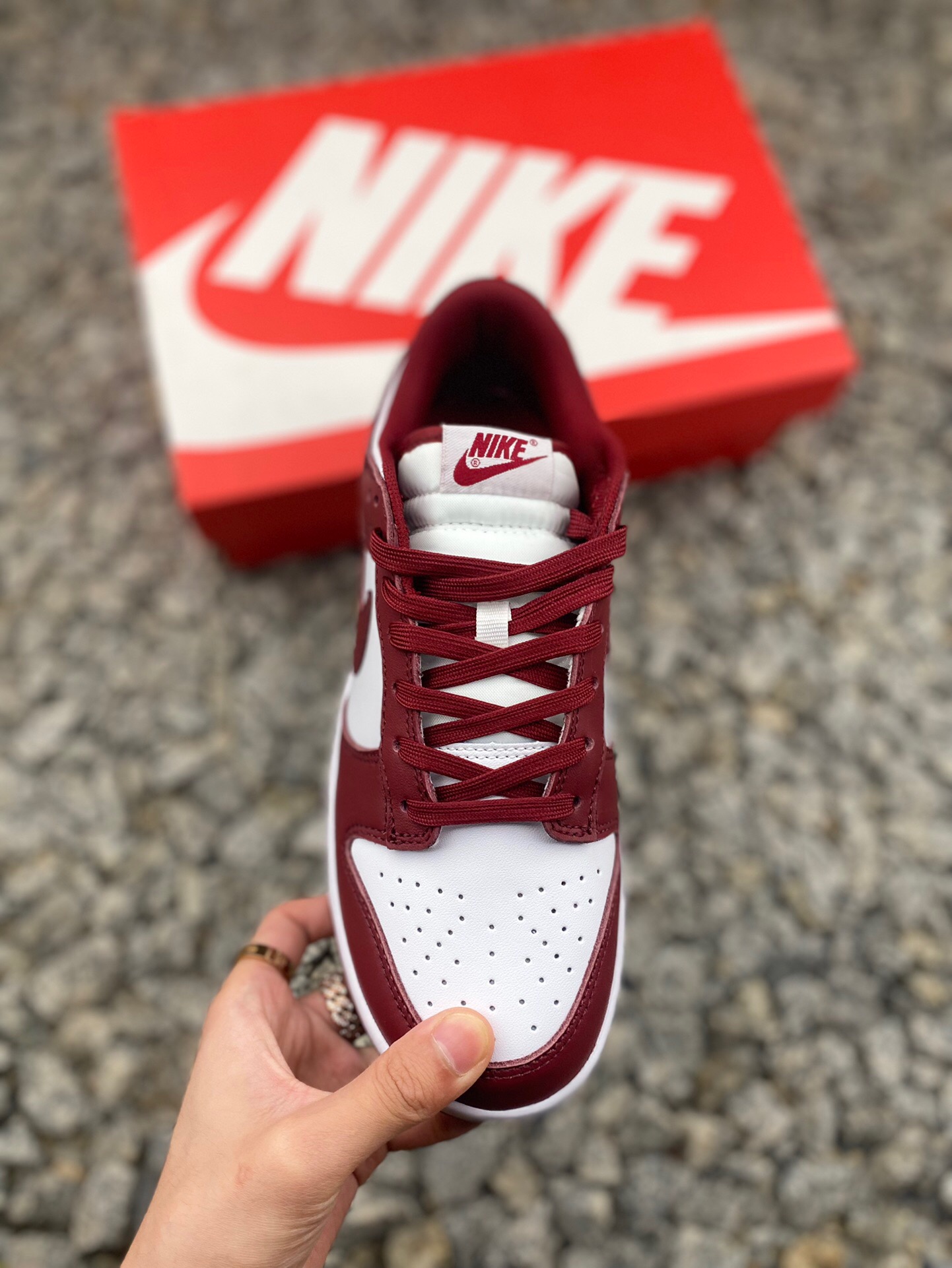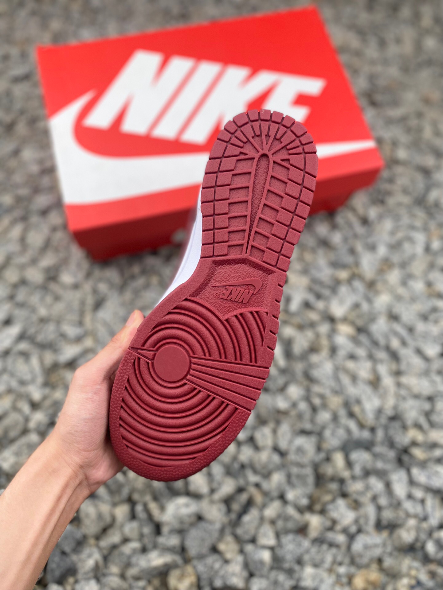 DetailThis shoe is made of milk white leather fabric, paired with a burgundy frame, and the Swoosh on the side of the shoe is also presented in burgundy, giving it a retro OG vibe. The tongue embroidery and shoe store are adorned with Nike logos, presented in burgundy color, which echoes the shoe body. The inner lining of the shoe is made of burgundy, paired with a pure white tongue to give the shoe a more three-dimensional feel.