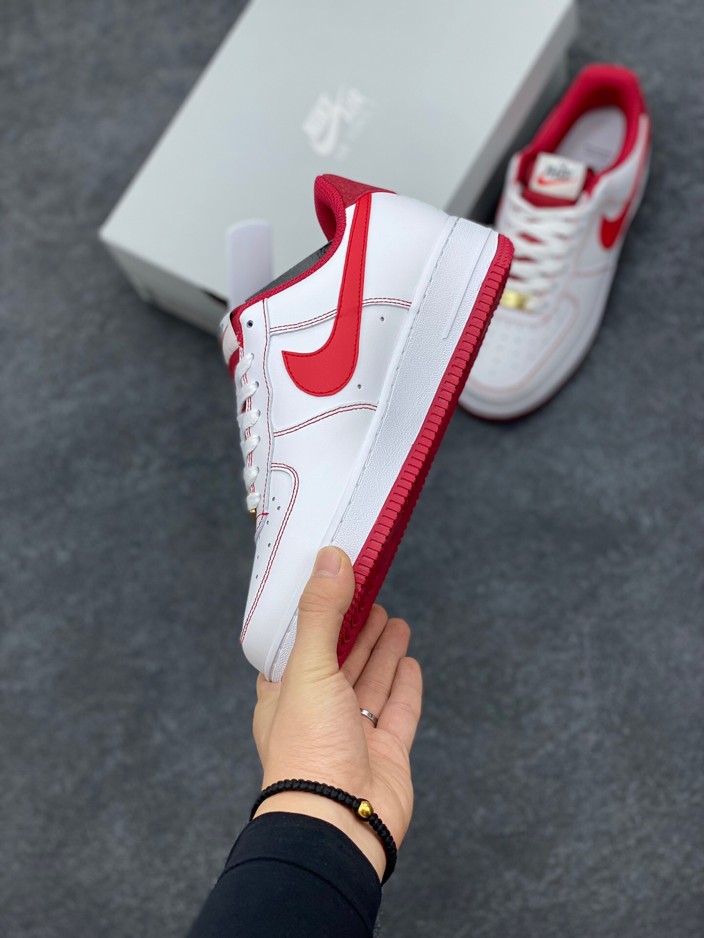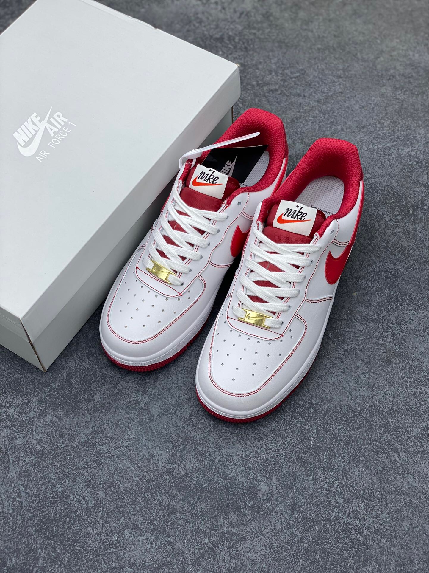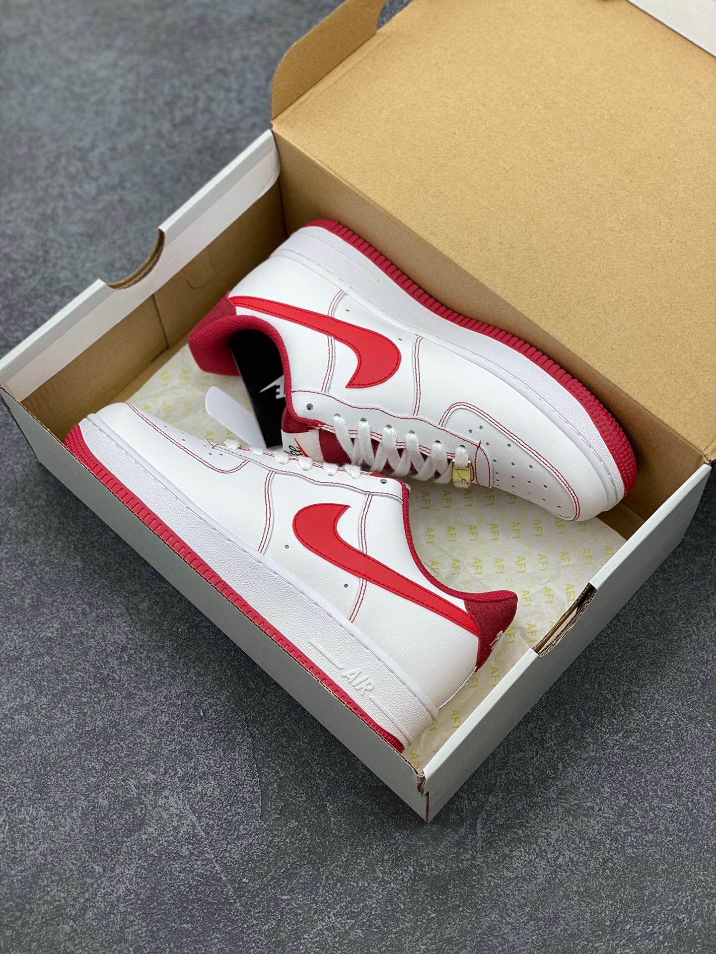 Nike air force 1 low 07 "first use" company level official sales white and red lines low top Air Force One casual board shoes custom leather raw last raw cardboard pure air force version