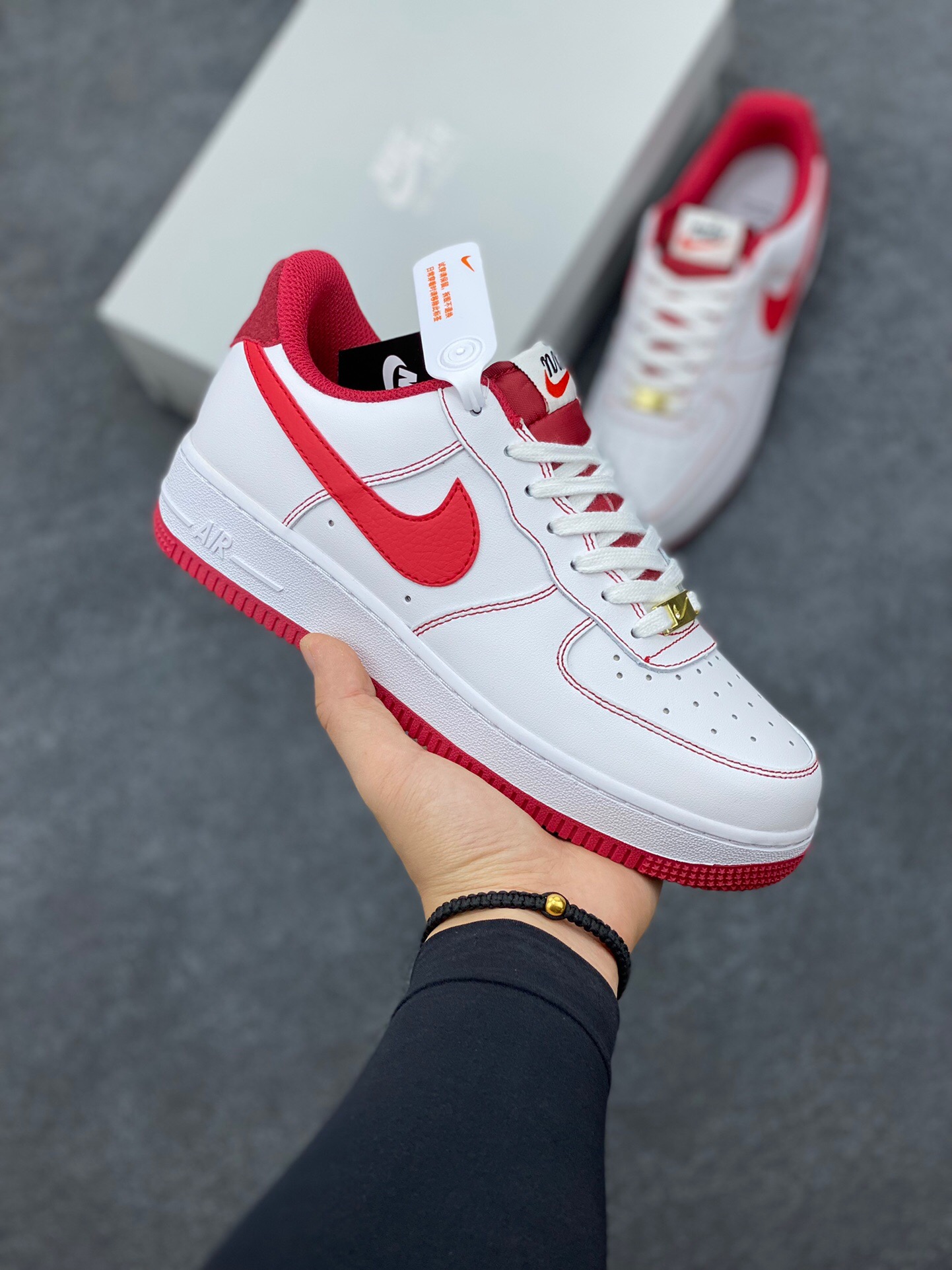 DetailNike air force 1 low 07 "first use" company level official sales white and red lines low top Air Force One casual board shoes custom leather raw last raw cardboard pure air force version