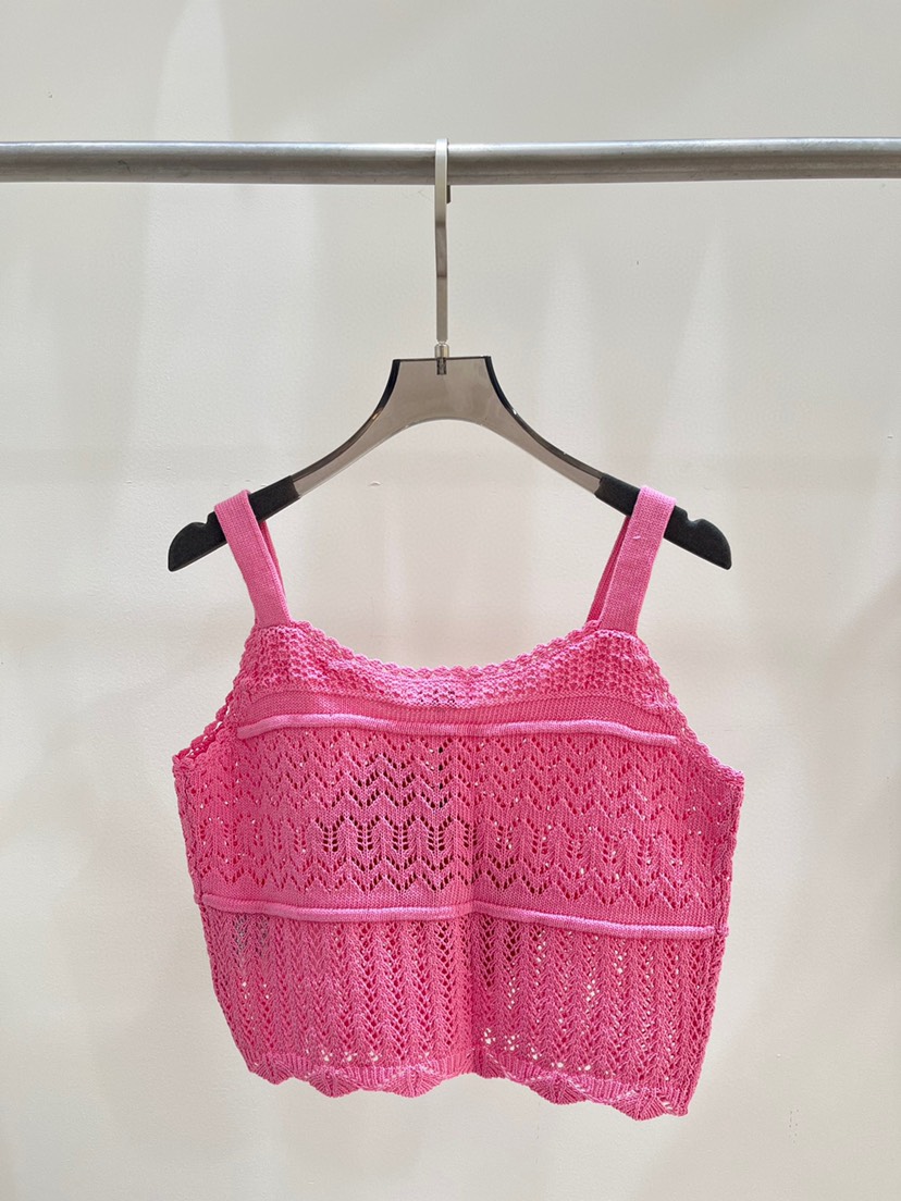 New Miu miu Top Quality 23 Summer New Hollow Holiday Style Knitted Camisole