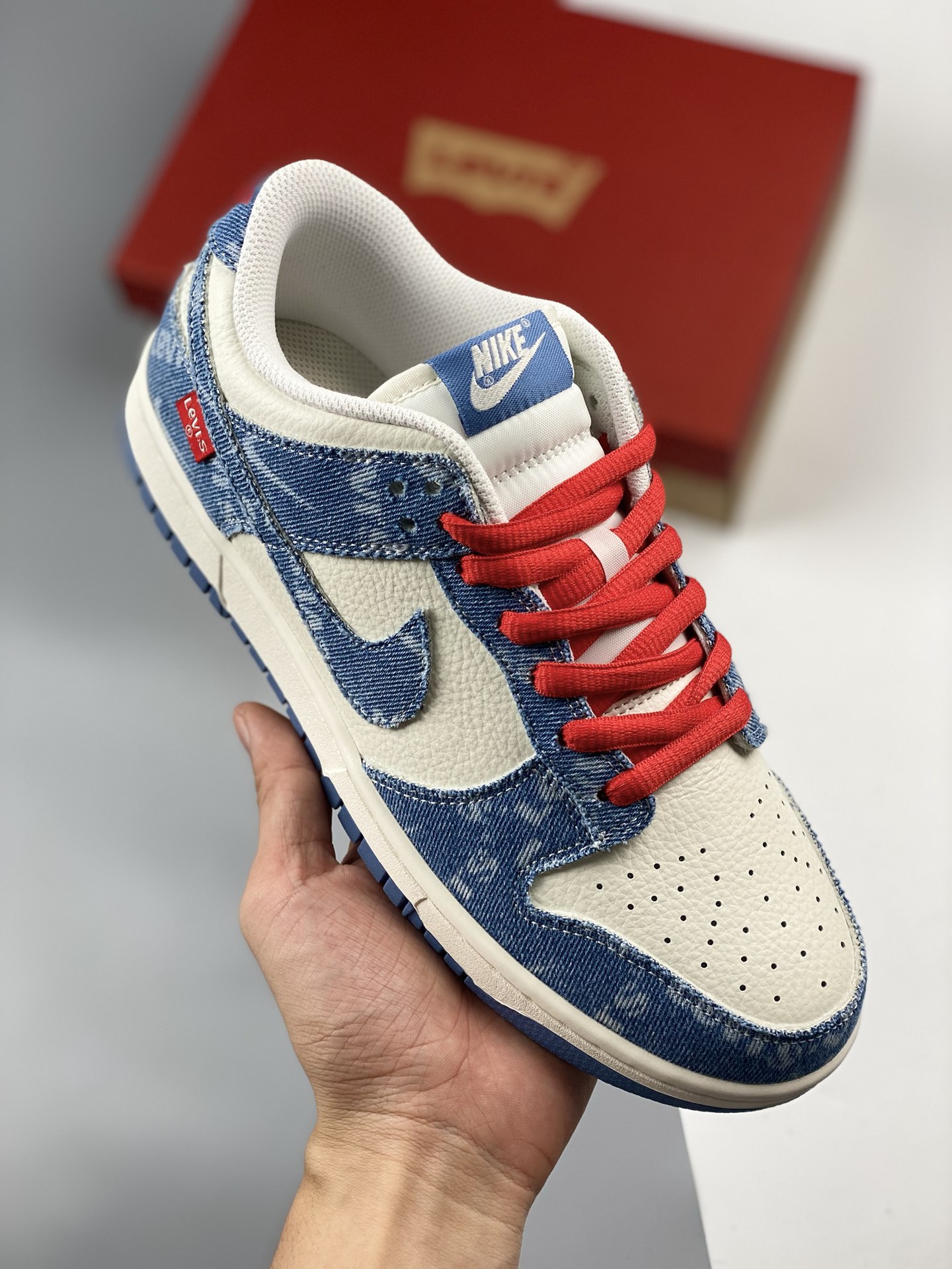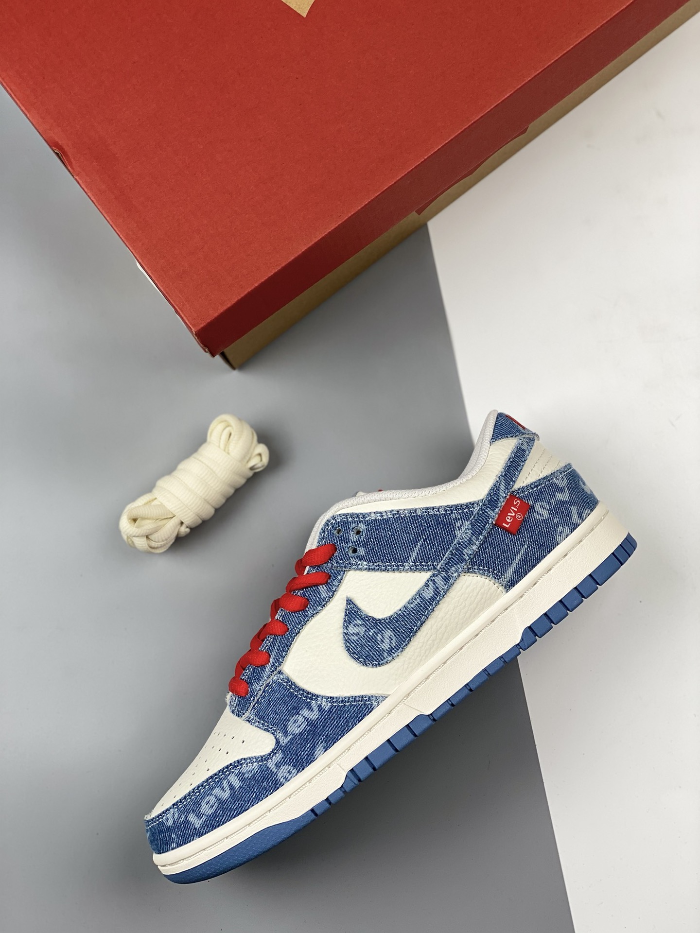 Nike dunk low levi's light blue Denim Levi's co named this shoe body is covered with a large area of canvas material, with white as the background color, matching the denim blue frame and swoosh design, the overall appearance is simple and versatile. In addition, the stitching on the shoe body is also outlined with white stitching to enhance the overall sense of layering. The previous word 'nike' has also been removed from the heel. The sole is designed with a white midsole and a blue rubber outsole, which complements the color scheme of the shoe. Article number: le0021-002