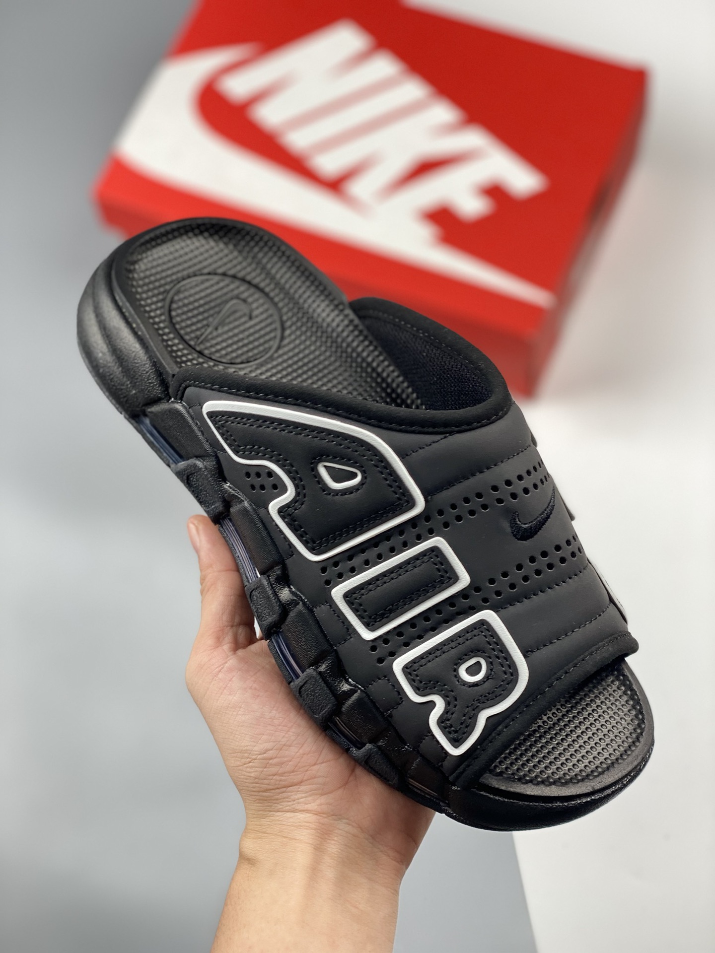DetailNike air more uptempo slide summer single piece leather pong slippers are inspired by the popular graffiti culture on the streets. The overall design style is exaggerated and charming, with a pair of huge letters "air" engraved on both sides of the thick and textured leather upper. The unique and cool appearance is stunning. Product number: dv2132-001size: 36 37.5 38.5 40 41 42.5 44 45 46 47.5