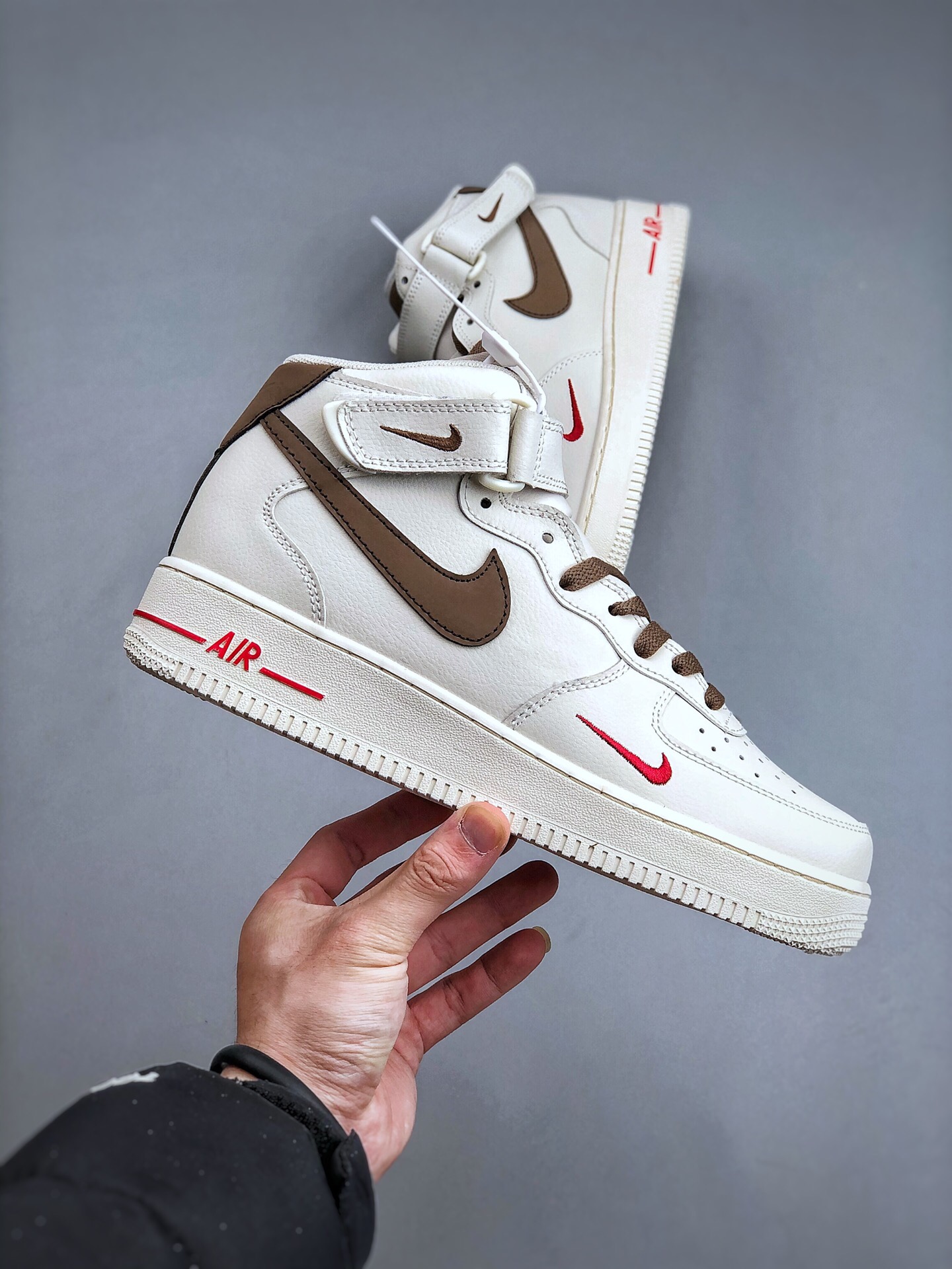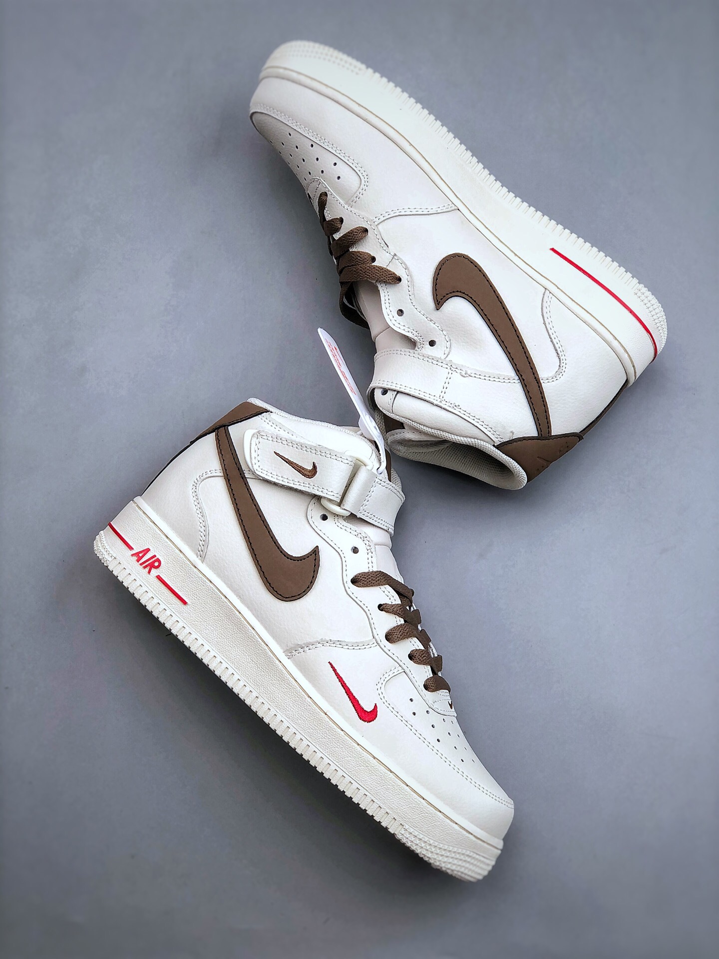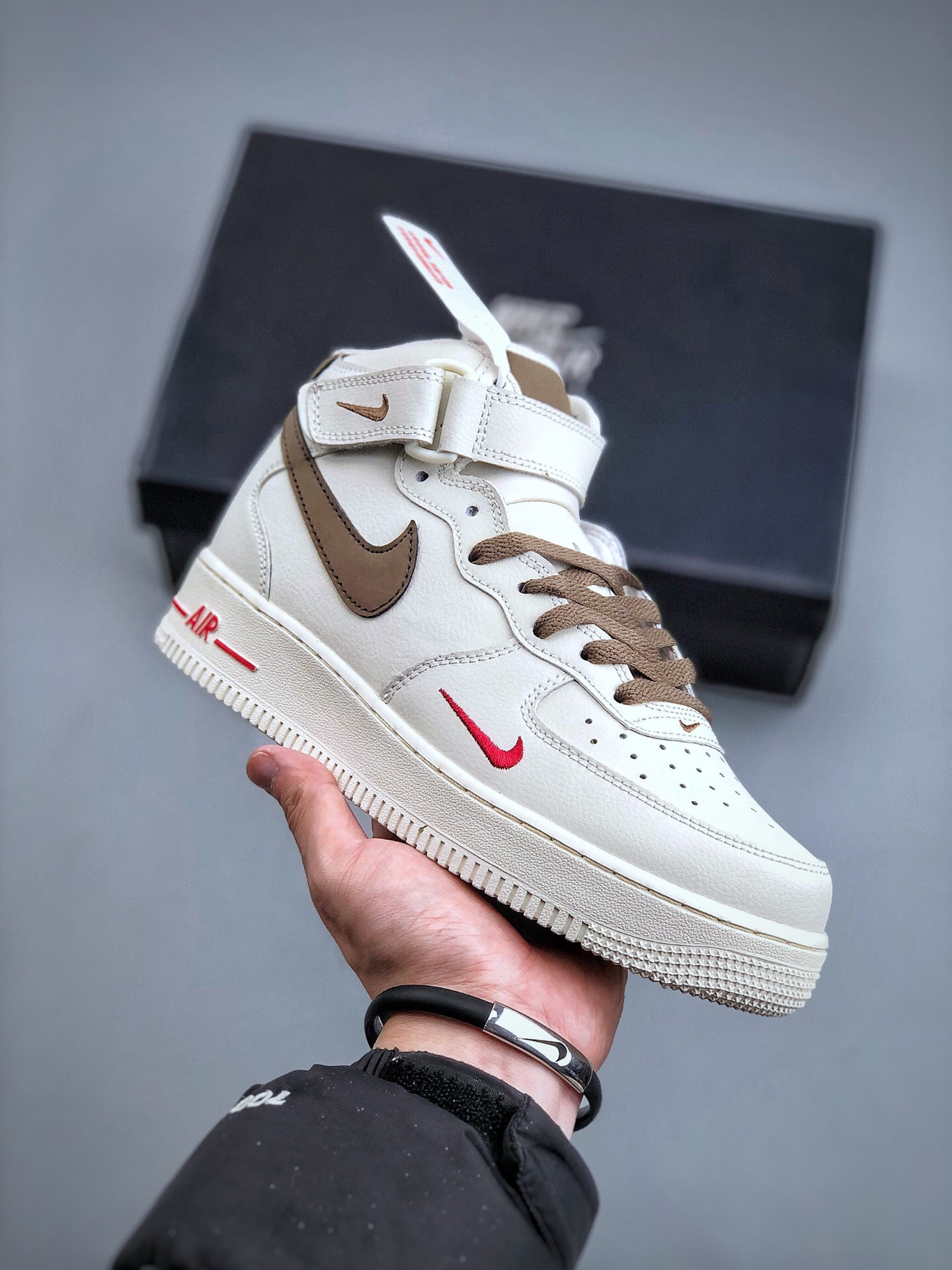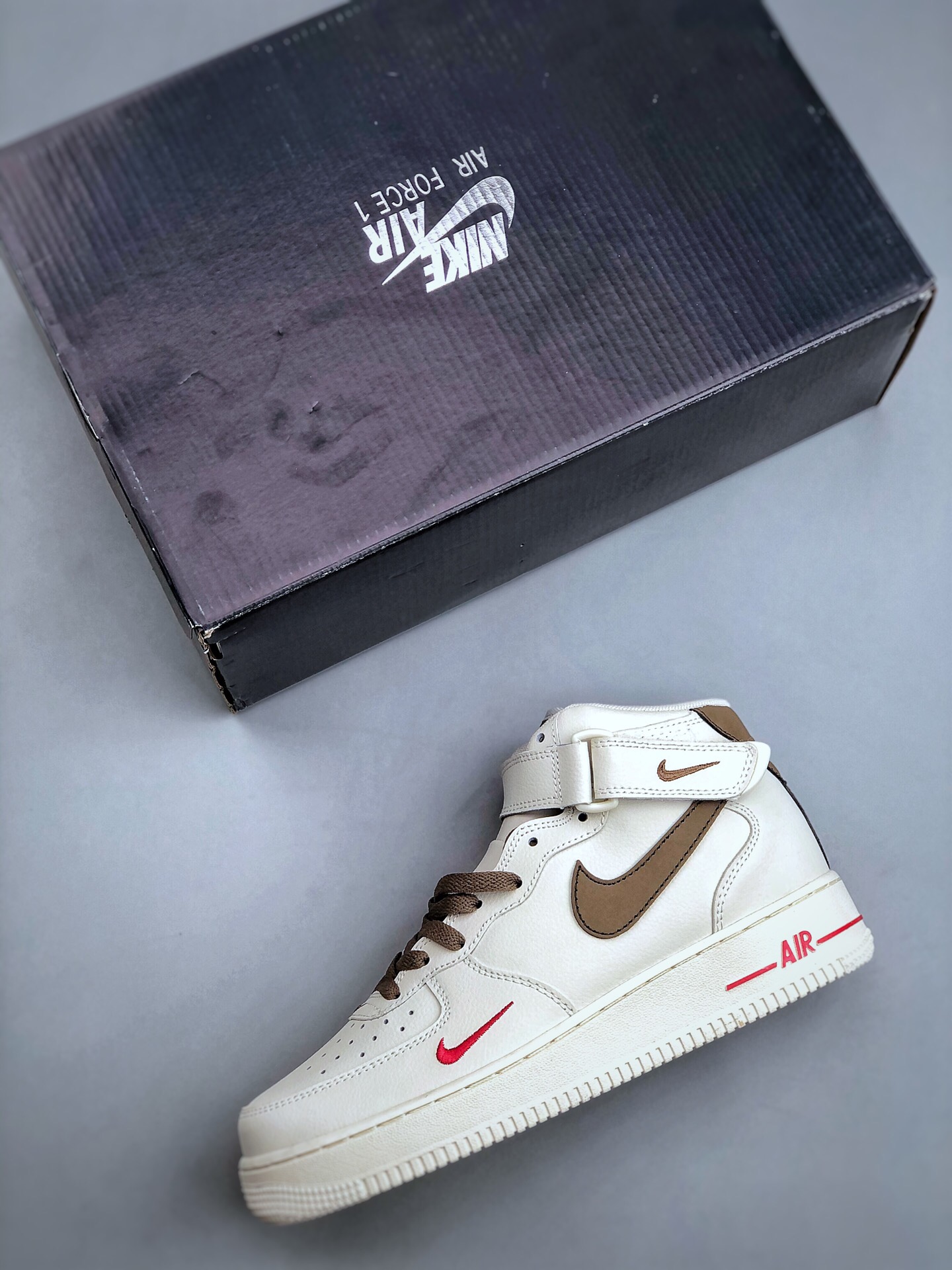 DetailNike air force 1 hi yohood white brown Air Force One middle top casual board shoes Customized leather Original factory 3d printing Customized shoe box Original last Original cardboard Pure air force version Built in full-length air cushion Article No.: 808123 996 size: 36 36.5 37.5 38 38.5 39 40 40.5 41 42 42.5 43 44 45
