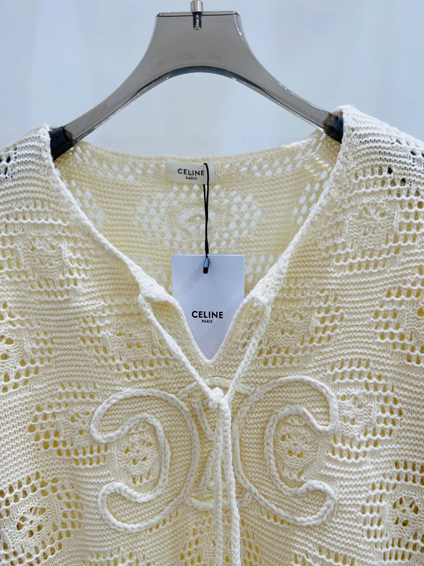 • New Celine Early Autumn New V-Neck Triumphal Hollow Tassel Knit Top