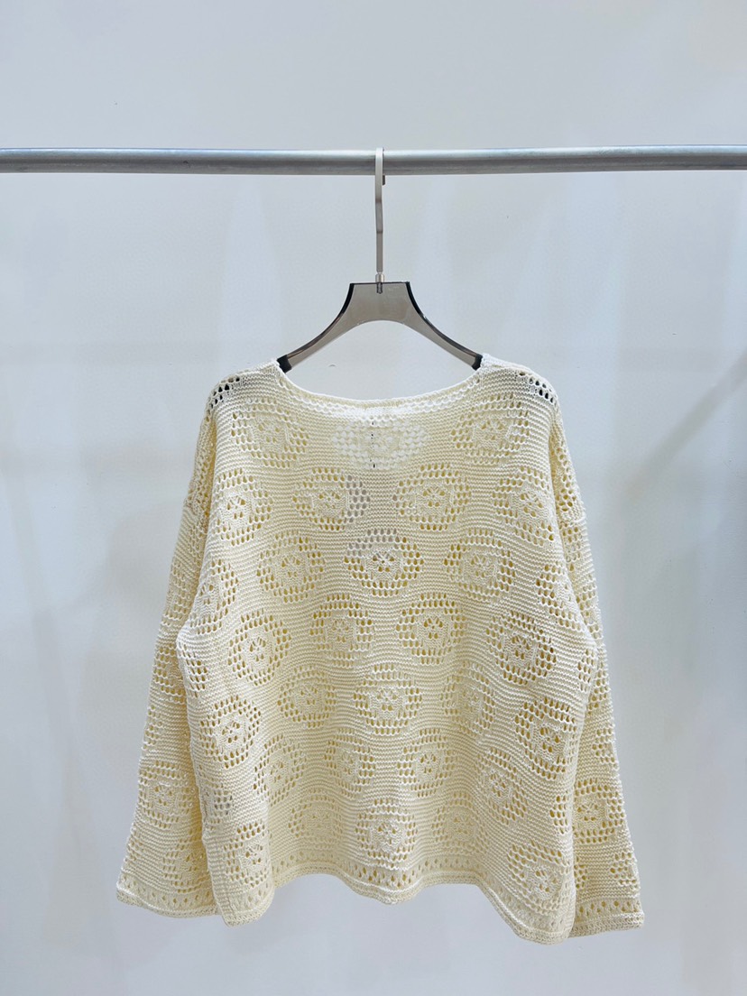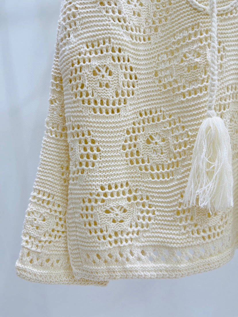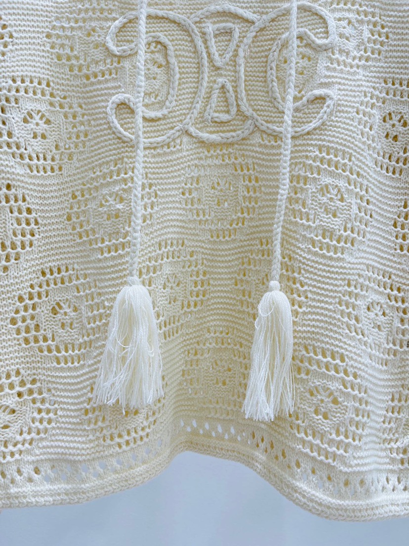 Exclusive Launch ❤️ Celine's early autumn new V-neck Triumphal Arch hollowed out tassel knit top with fisherman mesh solid color wool ball drawstring design, can be used as sun protection and air conditioning shirt. Knitted long style, a must-have item for fashionable and spicy girls, 100% wool 🦙