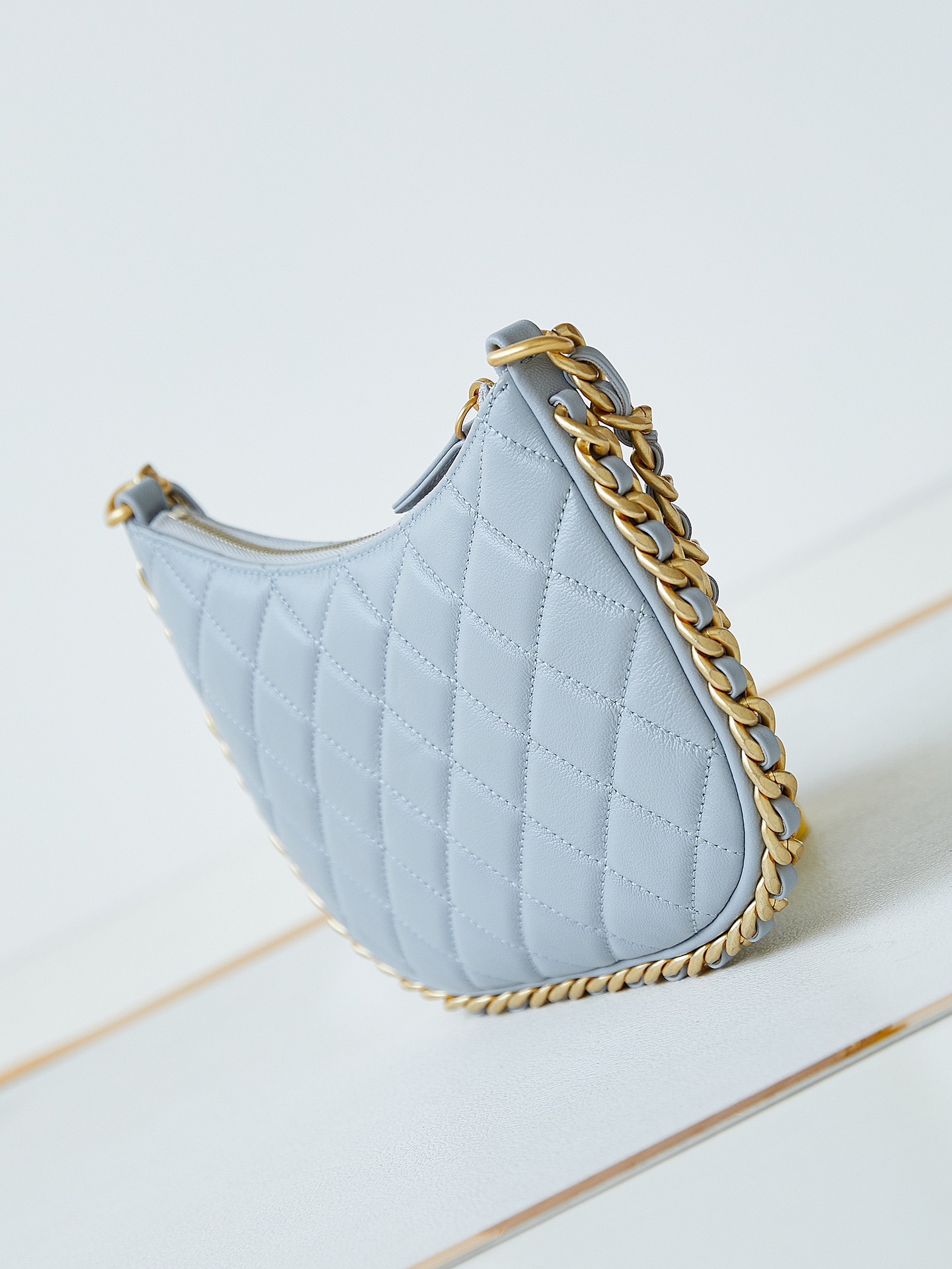 Newly designed hobo~with exquisite woven chain inlaid on the edge ❤️ Unique craftsmanship showcases fashion 💕 Let girls bloom with confidence in different occasions, and the embellishment of golden hardware adds a sense of luxury to the bag, exuding a noble temperament. The small size single chain design is simple yet exquisite, while the large size double chain design adds a sense of fashion. They present every detail exquisitely~It's also too charming! This quality is absolutely amazing. Model number as4378