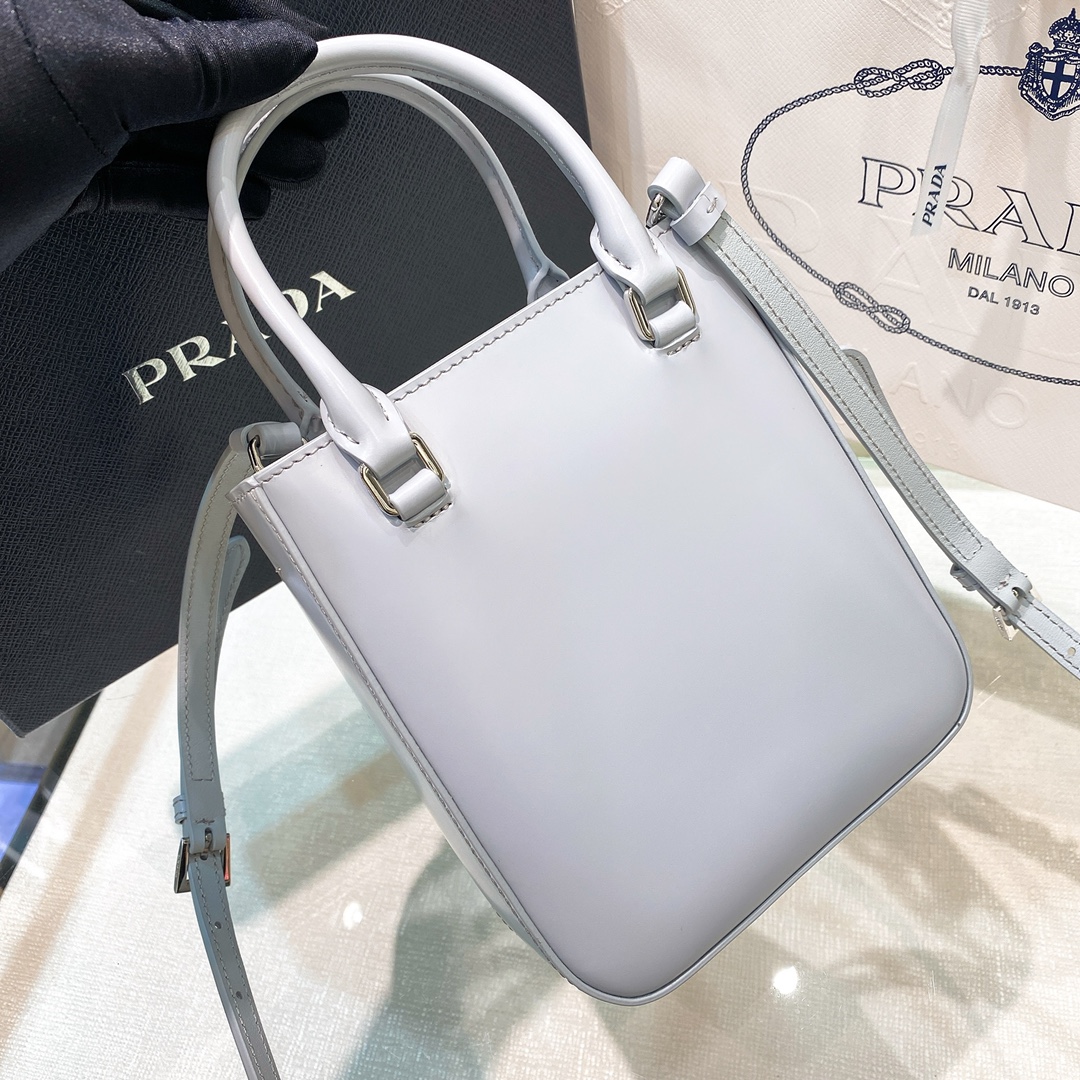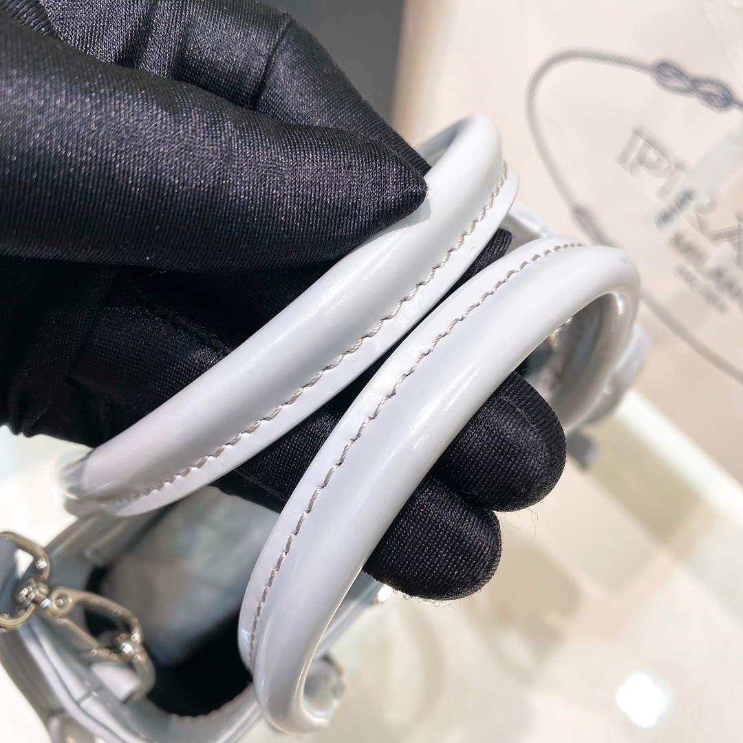 New Prada π The trendy new favorite bucket bag that is popular around the world is made of retro glossy cowhide, which gives this bucket bag its unique charm. The overall body is simple, shiny, and beautiful, with a luxurious and classic triangular logo inlaid. Inheriting traditional style, the inner layer of sheepskin is soft and delicate. It can be carried by hand, shoulder and back, and can be crossed over. Plus points. Full of classic inheritance and perfect integration with the trend of the times. The handbag is a must-have bucket bag for little fairies, with an ice gray size of 17.5 * 15 * 5cm
