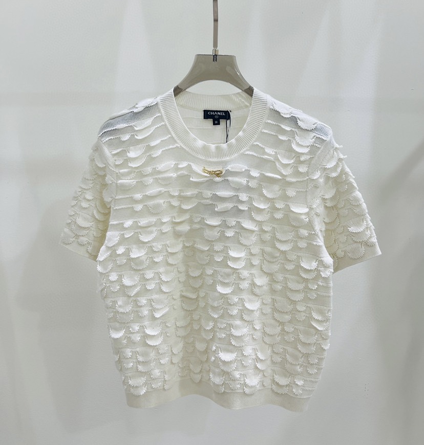 DetailExclusive Launch ❤️ Chanel23 Summer New Simple Fragrance Style Reduced Age Fish Scale Knitted Short Sleeve ➕ Half skirt, a must-have item for white richness and beauty, with high-end quality and detailed live shot display
